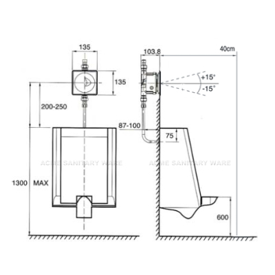 American Standard (PRC) concealed urinal sensor ; AC operated for sea water applications ; ADM MODE ; 24 hrs flushing system ; Water flush volume 1.5 litres/cycle in WELS Grade 1 ; Registration No. 1U 19-0004
