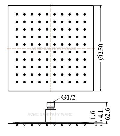 American Standard (PRC) "Super Thin" 250mm suqare rain shower head; Nominal flow rate 7.7L/Min in WELS Grade 1 ; Registration No. SB 18-0125
