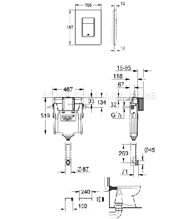GROHE (Germany) Rapid SL for wall hung WC with concealed flushing cistern 3/6L dual flush, 1.13M installation height; Skate Cosmopolitan Cool Sunrise ABS wall plate for pneumatic discharge valve in the vertical orientation during installaion; Wall bracket