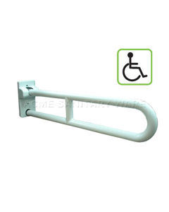 EMCA (Taiwan) Ø34 x 750mm long white ABS coated aluminium hinged support handrail with anti-slip surface ; BS12:1978 & BS882:1973 ; capable of carrying a static loading test 150kg ; test report J17177 ; Antibacterial coating ; test report SN-00-233 ; complied with Barrier Free Access 2008