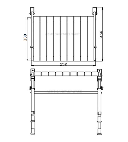 EMCA (Taiwan) Folding up shower seat with 9 PP anti-bacterial slabs & 435mm adjustable legs up to 595mm; Stainless Steel 304 hinge; Approved size: at least 550 x 450mm