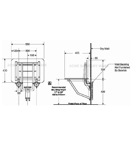 Bobrick (USA) Stainless steel shower folding seat with custom made seat panel in ivory color with Barrier Free Access 2008 (Amendments in April 2017) ; Approved size: at least 550 x 450mm