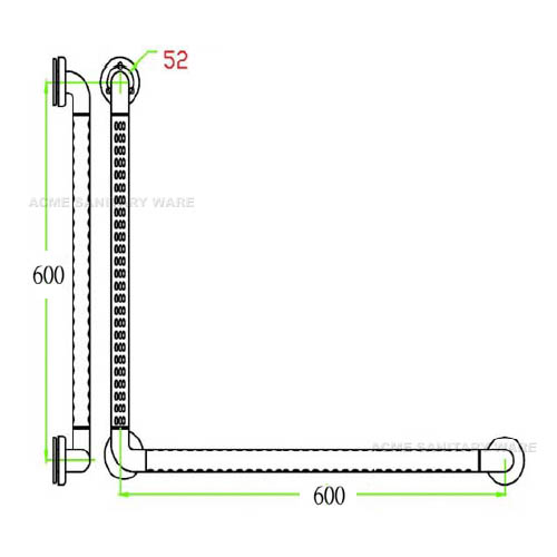 EMCA (PRC) Ø32 x 600 x 600mm long stainless steel 304 L-shape grab bar in satin finish ; GB 175-2007 ; capable of carrying a static loading test 150kg ; test report J23743 ; complied with Barrier Free Access 2008