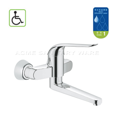 GROHE (Germany) "Euroeco Special" Chrome plated wall mounted basin mixer 1/2" ; nominated flow rate 5 L/min in WELS Grade 1; Registration No. TM 21-0297