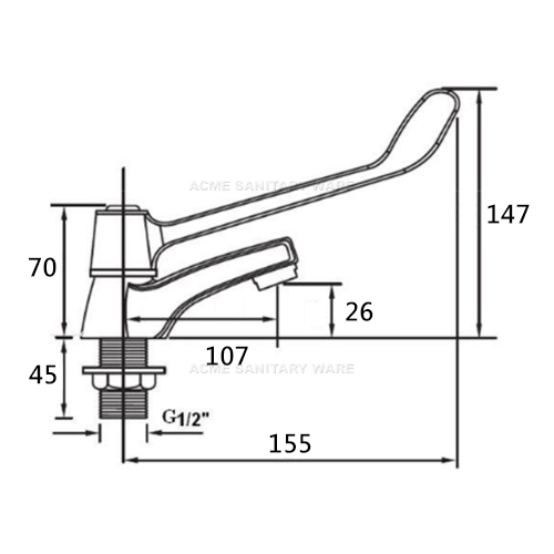 EMCA (PRC) Chrome plated elbow action pillar tap 1/2"; nominated flow rate 1.7 L/min in WELS Grade 1; Registration No. TN 22-0076; operating force of handler control less than 22N; test report J27503C