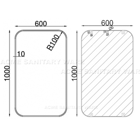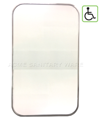 EMCA (PRC) Wall mounted R100 round corner 5mm "tempered glass" mirror with stainless steel frame in grade 304 & earth bonding hole ; protected with back film ; 1000mm x 600mm ; complied with Barrier Free Access 2008 (Amendments in June 2019)