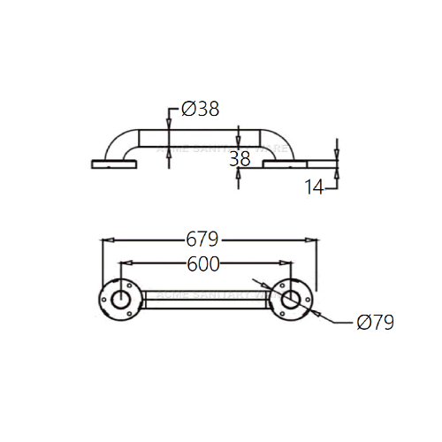 KnCOSA (Taiwan) Surface mounted stainless steel 316 straight grab bar with flange cover; capable of carrying a static loading test 150kg