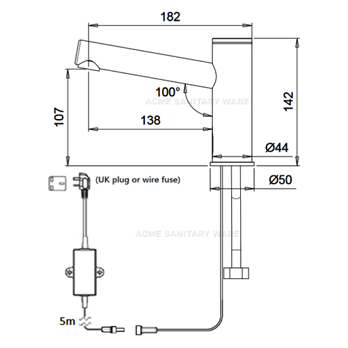Stern (Israel) "Elite 1000 Plus" Chrome plated deck mounted extended body sensor mixer with adjustable temperature limiter in AC Supply with 5m wire AC 110-240 Vac 50/60Hz to 9V 0.3A IP68 waterproof switching transformers
