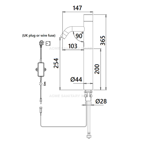 Stern (Israel) "Extreme 1000 Plus" Chrome plated deck mounted extended body sensor mixer with adjustable temperature limiter in AC Supply with 5m wire AC 110-240 Vac 50/60Hz to 9V 0.3A IP68 waterproof switching transformers