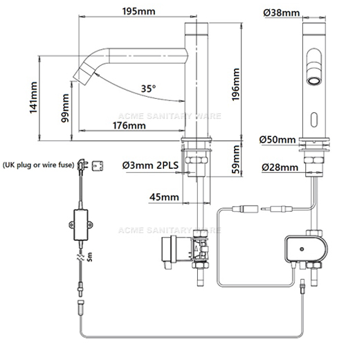 Stern (Israel) "Extreme 1000 Plus" Chrome plated deck mounted extended body sensor mixer with adjustable temperature limiter in AC Supply with 5m wire AC 110-240 Vac 50/60Hz to 9V 0.3A IP68 waterproof switching transformers