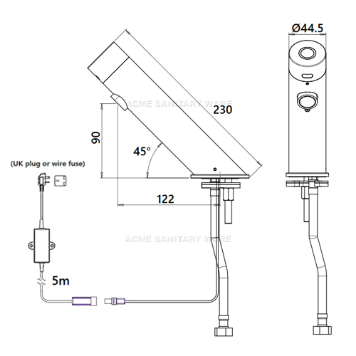 Stern (Israel) "Green BR" Chrome plated deck mounted sensor faucet with LED ring illumination in AC Supply with 5m wire AC 110-240 Vac 50/60Hz to 9V 0.3A IP68 waterproof switching transformers