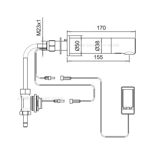 Stern (Israel) "Tubular 1000" Chrome plated wall-mounted sensor mixer with adjustable temperature limiter in 6x1.5AA DC Supply with IP67 waterproof battery box