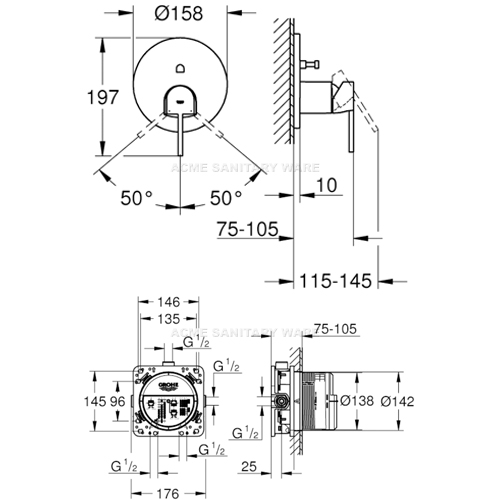24060003 (Bath & Shower mixer) + 35600000 (Mounting box)