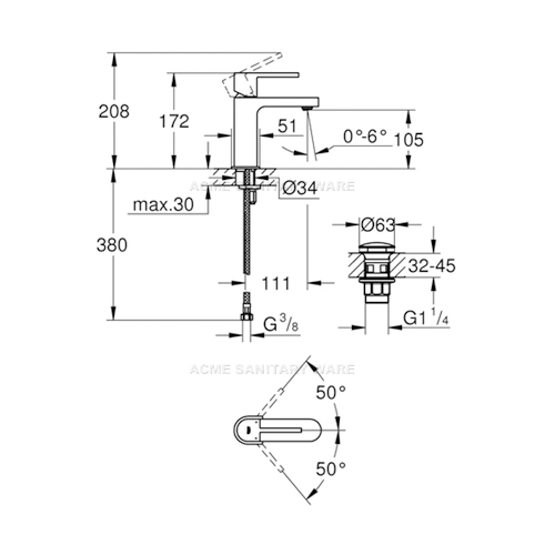 GROHE (Germany) "Plus" Single-lever basin mixer S-Size with push-open pop-up waste set; nominated flow rate 5.1 L/min in WELS Grade 2; Registration No. TM 22-0017