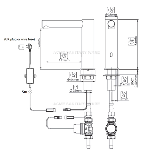 Stern (Israel) "Ever AISI316" Stainless steel AISI316 deck mounted sensor faucet in AC Supply with 5m wire AC 110-240 Vac 50/60Hz to 9V 0.3A IP68 waterproof switching transformers