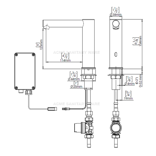 Stern (Israel) "Ever" Chrome plated deck mounted sensor faucet in 6x1.5AA DC Supply with IP67 waterproof battery box